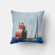 Grote Rode Michigan vuurtoren en zeilboot Kussen