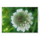 Eine grosse einzelne weisse Kleeblüte vor grünem wiesenhintergrund ist auf dieser Grusskarte. Die Karte ist deken.