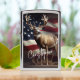 A noble deer stands tall before a rippling American flag, its antlers arcing like natural crowns against the sky. This powerful composition blends the quiet dignity of wildlife with the bold spirit of national pride—an emblem of nature's strength and the enduring freedom it watches over.