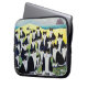 Een kudde tuxedo-katten kijkt naar de kijker op het strand.