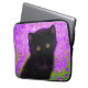 Laptophoes met een Gustav Klimt cat! Dit vloeiende kat zit in een groen veld van paarse bloemen. Een purr-fect cadeau voor kattenliefhebbers en Oostenrijkse kunstliefhebbers!