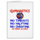 Onze Gymnastiek No Wimps wijst erop dat er geen tweede kans is in Gymnastics, ook al is er geen plaats voor wimpers in deze sport! *Opmerking: wij bieden dit ontwerp in twee kleuren aan; die voor lichte kleuren en voor donkere kleuren werkt. Als u uw eigen shirt creëer, zorg gelieve ervoor u het correcte kleurenontwerp kiest.