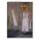 Une jeune dame essaye sur les vêtements de sa mère. Elle équilibre dans les chaussures surdimensionnées de talon haut, avec un grand casquette sur sa tête, en tant qu'elle attache son tablier. Cette peinture commencée par un instantané d'une petite fille environ pour dépanner ses parents dans les coulisses d'une cabine de nourriture à la fiesta de Santa Barbara. Elle attachait vers le haut d'un tablier plutôt grand. Dans mon imagination j'ai déplacé la scène à une chambre à coucher, ai ajouté un miroir intégral de plancher, et lui ai donné quelques vêtements plus surdimensionnés. Tout ceci a eu comme conséquence cette peinture de studio.