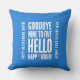 Hallo Vier de pensionering van een aanstaande ex-collega met dit grappige kussen, dat het sentiment "Vaarwel negen tot vijf uur" in een wit, grunge stijl lettertype, met een appel martini slim in plaats van de "Y" in "Happy" op een rustgevende baby blauwe achtergrond. Omgekeerde shows identiek ontwerp. Ontwerp © W.H. Sim. Zie meer op zazzle.com/wordsofwhimsy