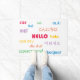 Bent u op zoek naar een deurmat die gasten op een leuke manier begroet? Hallo Deze lichte en kleurrijke deurmat zegt! in veel verschillende talen, waaronder Frans, Engels, Spaans, Noors, Gaelic, Chinees, Duits en nog veel meer! De achtergrondkleur kan worden gewijzigd met behulp van het menu!
