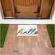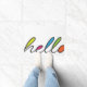 Vereenvoudigd, modern ontwerp met de groet "hallo" die van de rand van de mat spuugt. Juike kleuren maken het leuk en uitnodigend.