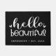 Moderne trendy gepersonaliseerde slaapfunctie biedt 'hallo prachtige' typografiescript op een zwarte achtergrond. Pas uw familienaam aan en het jaar dat in de klassieke blokletters is vastgesteld. Perfect als cadeau.