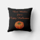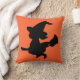 Schattige vliegende heksensilhouet op oranje achtergrond grijpt één kant van deze kussen en het bericht "Beste heks voor een Happy Halloween", in oranje letters op een zwarte achtergrond grijpt de andere kant in. Een leuke en bruikbare Halloween decoratie, deze kussen worden gemaakt in de VS.