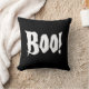 Halloween Boo Pillow in zwart-wit op de voorzijde en zwart op de achterzijde. Pas dit object aan of koop zoals het is.