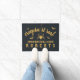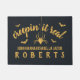 Klassieke en elegante Halloween doormat voor herfst met donkere, spooky grijze faux burlap background - "creepin' it real" tekst in maar sinaasappel met vleermuizen, spin en je familienaam