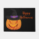 Halloween deurmat wordt getoond in zwart met een feestelijke pompoen heks print. Pas deze mat aan of koop zoals hij is. Afbeelding