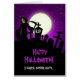 La Faucheuse Grim dans une cour grave avec une pleine lune et un arrière - plan de ciel violet. Design très amusant et effrayant pour votre design de carte de voeux Halloween.