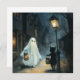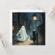 Halloween scène met een spook en kat vergadering in de straat