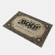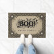 Verwelkom gasten in spookachtige stijl met deze gotische Halloween welkomstmat met gedurfde "BOO!" -letters omringd door schedels, vleermuizen, pompoenen, spoken en patronen. Dit ontwerp kan worden gepersonaliseerd met uw familienaam voor een unieke Halloween-decoratie.
