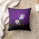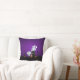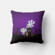 Een spookachtig lol kussen met een griezelig schattig halloween ontwerp. Stel je in een donkere en enge begraafplaats. Een gravestone zegt RIP, met een kaars en een paar gloeiende schedels op de grond. Een oude griezelige hek gaat naar de zijkant. Een schattig glimlachend skelet zwaait en een paar coole, uitziende spoken draaien rond in de lucht. Reeks op een zwarte en paarse gradiëntachtergrond.