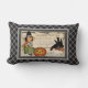 Deze kussen voorzien van een Halloween afbeelding uit het begin van de jaren 1900, die een schattig meisje in het kostuum van een heks toont die Halloween Greetings uitstuurt met een jack-o-lantaarn, bezem en een paar zwarte kraaien. Caption zegt: "Ik dacht dat ik een heks zou willen zijn en in de lucht zou rijden. Ik ben gedoemd om de CAWS te teleurstellen die ik niet kan vliegen." De achtergrond is een diagonaal vlakpatroon in zwart-wit.