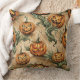 Dit naadloze Halloween-patroonwerpkussen is voorzien van ingewikkeld geïllustreerde pompoenen, sommige uitgehouwen in grijnzende jack-o'-lantaarns, verstrengeld met krullende wijnstokken en bladeren. Geschilderd in een sepia-getinte paletachtergrond, roept het ontwerp de charme van antiek gravures op. Perfect voor het creëren van een nostalgische, spookachtige maar elegante Halloween-sfeer. Ideaal voor seizoensgebonden interieur, feestartikelen of unieke Halloween-geschenken met een vleugje ouderwetse kunst.
