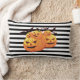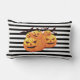 Dit kussen wordt getoond in een zwart-wit stripesprintontwerp met een pompoen van Halloween. Pas dit object aan of koop zoals het is. StockAfbeelding vecteezy.com