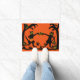 Halloween rustic/primitieve deurmat. oranje en zwarte silhouetkunst uit 1900 . U kunt deze mat met uw eigen tekst/groeten aanpassen.