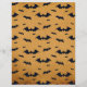 Een zwart vleermuispatroon op een gevlekte oranje achtergrond. Dit artikel is perfect voor Halloween-ontwerpen, scrapbook- en journaalprojecten. Beide zijden van het papier hebben hetzelfde ontwerp. U kunt het achterste afbeelding verwijderen, indien nodig, door te gaan "Ontwerp"uitgeven en op de "Achtertekst en laag van afbeeldingen te klikken. Het bijbehorende en aanvullende ontwerp is te vinden in onze Zazzle-winkel en ons 'Gothic Style'-Collectie.