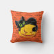 Dit kussen met worp wordt getoond in een zwarte en oranje kleur met een schattig Happy Halloween zwart kattenprint design. Pas dit kussen aan of koop zoals het is.