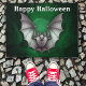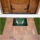 This outdoor welcome door mat is black with a glowing green cave with a spooky grey flying bat. Customise your text with the template.