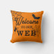 Voeg een vleugje Halloween-geest toe aan uw huis met deze spookachtige Spider Welkom op ons webkussen. Met spinnenwebben, spinnen en een vleermuis, op een diep oranje achtergrond. Perfect voor het instellen van een griezelige vibe naar elke ruimte. Het is een geweldige aanvulling op uw seizoensgebonden decor. Alle tekst kan indien nodig worden gewijzigd en de achtergrondkleur kan worden verwijderd of gewijzigd.