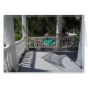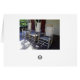 De ochtendzon giet schaduwen op deze zuidelijke veranda, waar een hammock wacht. Op de achterkant van de kaart staan drie draaiende stoelen op een veranda, klaar voor de inzittenden.