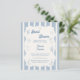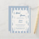 A hand drawn style Bridal Shower invitation with beach, coastal theme. A soft ivory and dusty blue striped colored background, with an ivory frame and dusty coastal blue elements. Personalize and add her name and the party details.