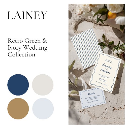 Lainey • Hand-Drawn Retro Blue Wedding SuiteOntworpen door Julia An