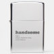 Een handige charkoolgrijs moderne typografie, grappige, sexy Zippo Lighter. Met douane gepersonaliseerde tekst, bericht, uitdrukking, citaat, of u kunt het enkel schrappen. Of u kunt verkiezen om het typografische afbeelding uit te geven of te schrappen en enkel de gepersonaliseerde tekst te verlaten. Beschikbaar in veel kleuren en stijlopties. Geweldig geschenk voor je vriend, belangrijk ander, man in je leven voor zijn verjaardag, vaders dag of Valentijn Dag. De glanzende chroomoptie werkt ook als spiegel.