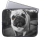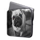 Zwart-witte foto van een zeer knap pug met grote glimmende bruine ogen. Geweldig geschenk voor jezelf of de sukkelaar in je leven.