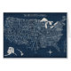 Deze waterverf print heeft een diepe blauwe kaart van de Verenigde Staten van Amerika | Door Michael Mullan