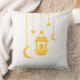 Celebrate the spirit of Ramadan with this charming pillow design featuring golden hanging elements—crescent moons, stars, and a traditional lantern. Symmetrical and serene, this minimalist accent brings warmth, joy, and cultural elegance to prayer spaces, cozy corners, or festive gatherings.