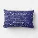 Een feestelijke kussen om naar de feestdagen te komen, of het jaar rond! "Blessings" in wit op een feestblauwe achtergrond, bedekt met witte sneeuwvlokken.