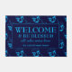 Stijlvol Hanoekah-doormat met de tekst WELCOME & BE BLESSED ALL DIE HIER INGEVOEGD plus aanpasbare placeholder name. Het ontwerp is een cyaan blauw droompatroon tegen een middernacht blauwe achtergrond. Alle tekst is , zodat u de tekst kunt aanpassen aan uw behoeften, bijvoorbeeld familienaam, familiemutto, inspirerend citaat toevoegen. Geweldig geschenk voor Hanukkah.