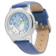 Style: Kid's Stainless Steel Blue Leather Strap Watch