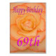 Een Birthday wenskaart met een afbeelding van een prachtige gele bloem met roze rand aan elk van zijn bladen. De kaart heeft de massage "Happy 69th Birthday" in roze letters. Al het werk en de afbeeldingen van martinspixs, komen snel weer terug om nieuwe wenskaarten te zien.
