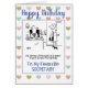 Secretaris-verjaardagskaart De secretaris vertrekt vroeg omdat ze niet zo laat kwam. Pas je eigen gegevens en berichten aan