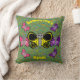 Des papillons roses et violets de chaque côté d'un papillon jaune contre un arrière - plan vert aux confettis composent ce coussin amusant. Retournez-le pour un arrière - plan vert avec des papillons carrelés contre des confettis. Personnalisable pour pouvoir ajouter votre propre texte et modifier la couleur de l'arrière - plan. Ce design est disponible en coussin rond et carré. Ça fait un grand cadeau !