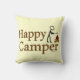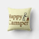 Het gezegde is blij met de camper met een stokfiguur die de marshmallows over een kampvuur roost.