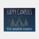 Cute, gepersonaliseerde RV camping decor doormat for rvers, gepensioneerde paren, en campers- Welkome doormat leest- 'Happy Campers' in handgeschreven teksten, witte letters bovenaan met een tekst-sjabloon voor het toevoegen van familienaam onderaan. Met een simpele, donkergrijze illustratie van een kampeertent in teepelstijl 's nachts omringd door pijnbomen en sterren. Tegen foto van donkerblauwe, sterry sky achtergrond. Ook een geweldig cadeau voor paren met pensioen. Hij zou net thuis kijken voor een RV of een luie blokhut in de bossen.