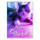 Joyeux Caturday ! ... Comme tous les propriétaires d'un chat le savent, chaque jour est Caturday. Drôle et mignon, avec un texte rond, vierge à l'intérieur pour que vous puissiez écrire votre propre message. Ce type furry est Traveler, un chaton de deux ans dont la mère était l'un de mes chats secourus. Il est né derrière mon canapé, et à partir du moment où les chatons étaient assez vieux pour quitter le nid, il a été le premier à explorer le nouveau monde courageux, reniant tout avec grand plaisir. Finalement, nous avons trouvé des maisons pour ses frères et soeurs et sa mère, mais il a décidé de rester avec moi. Il est très affectueux, un ami courageux qui aime se chamailler, et m'a bien entraîné. J'ai ajouté un filtre mauve tape-à-l'oeil à cette photo de chat pour lui donner le traitement royal ! Parfait pour les amoureux de les chats, les amoureux des animaux en général, les amis et la famille, un bon design d'humour sûr d'obtenir un chuckle que envoyé dans le courrier ou collé sur le réfrigérateur. Joyeux Caturday ! Oeuvre photo originale de M Sylvia Chaume.