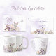 12 oz Latte Mug with a border of floral Easter eggs, bunny and butterfly and Happy Easter