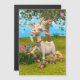3D rendering van een blije cartoon geit op een fantasy tuin achtergrond