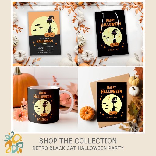 Retro Black Cat Halloween PartyOntworpen door Laura I.