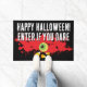 Zet de toon voor spookachtig plezier direct aan de deur! Verwelkom gasten met deze Halloween-deurmat met gedurfde witte tekst met de tekst "Happy Halloween! Voer in als je durft." op een zwarte achtergrond. Geaccentueerd met griezelige rode bloedspatten, een griezelige oogbol en feestelijke suikermaïs, is deze mat de perfecte mix van eng en speels. Hoewel de tekst niet aanpasbaar is, maakt het opvallende ontwerp het een instant gespreksstarter. Duurzaam en in het oog springend, het is ideaal voor veranda's, ingangen of spookhuisfeesten - waardoor trick-or-treaters en bezoekers een angstaanjagend leuke eerste indruk krijgen.