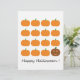 Een schattig stukje feestelijke oranje pompoenen worden aan het eind van de lijn aangesloten bij een vrolijke feestboer o' lantern. Happy Halloween!