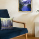 Bekijk dit prachtige Happy Hanuka Holiday kussen met sierkaarsen, kant en een boog in blauwe tinten. Het is origineel en met de hand geschilderd. U vindt veel bijpassende items met het ontwerp van deze kaars in hetzelfde collectie. Fijne Chanoeka!