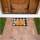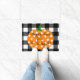 Welkom uw gasten dit seizoen met deze trendy gepersonaliseerde deurmat met een buffalo check achtergrond, een polka stippomkin en uw familienaam.